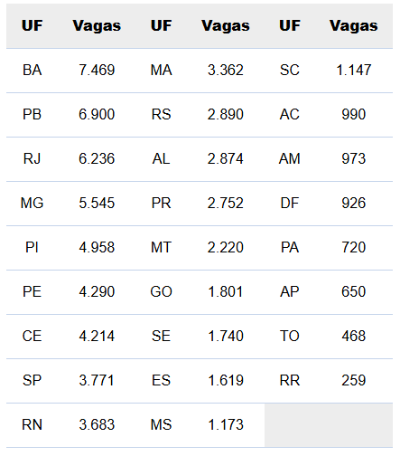 Confira as vagas de licenciaturas disponíveis no Sisu 2026, por unidade da Federação (UF):