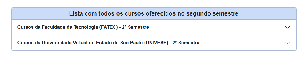 As vagas são destinadas a alunos da rede da Secretaria da Educação do Estado de São Paulo (Seduc-SP), das Escolas Técnicas Estaduais (Etecs), escolas municipais e outras redes públicas de ensino do País. Nesta etapa, os jovens podem registrar a opção de até dois cursos de preferência para as Fatecs e duas opções de eixo e curso para os polos da Univesp. As aulas nas Fatecs são presenciais. Já na Univesp, os cursos são online, mas os alunos devem estar matriculados em unidades próximas ao município onde residem.